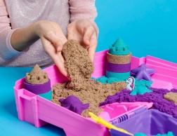 Η μοναδική υφή της Kinetic Sand κάνει τους κόκκους να έλκονται μεταξύ τους, ώστε η μάζα να μην διασκορπίζεται στον χώρο και τα μοντέλα να διατηρούν καθαρά άκρα. Τα παιδιά φτιάχνουν εύκολα κάστρα, πύργους, κοχύλια, αστερίες, χελωνάκια και γοργόνες. Το σετ είναι κατάλληλο από 3 ετών.