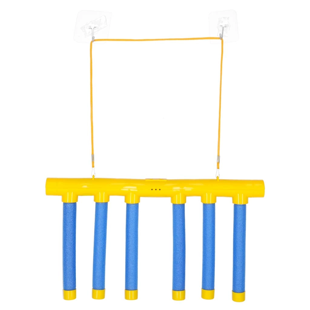 Η ταχύτητα πτώσης αλλάζει με ένα κουμπί (3 επίπεδα), το LED υποδεικνύει την κατάσταση και οι φωνητικές οδηγίες (EN) σας καθοδηγούν στο παιχνίδι. Μετά από ένα λεπτό αδράνειας, η συσκευή απενεργοποιείται αυτόματα, ώστε να εξοικονομείται η μπαταρία. Μπορείτε να το κρεμάσετε από το ταβάνι ή σε λεία επιφάνεια με τους παρεχόμενους γάντζους και το κορδόνι.