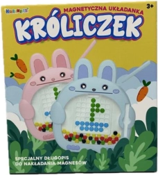 Διασκεδαστικό μαγνητικό μωσαϊκό σε σχήμα λαγουδιού που αναπτύσσει τη φαντασία και την επιδεξιότητα των παιδιών. Με το μαγνητικό στυλό τα παιδιά μετακινούν εύκολα τα πολύχρωμα κουμπάκια και συνθέτουν εικόνες σύμφωνα με τα πρότυπα ή τη δική τους φαντασία. Το σετ περιλαμβάνει πολύχρωμα μαγνητικά κουμπάκια, μαγνητικό στυλό με ενσωματωμένη θήκη και κάρτες με πρότυπα. Εξαιρετικό βοήθημα για λεπτή κινητικότητα, δημιουργικότητα και συγκέντρωση.