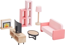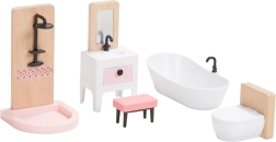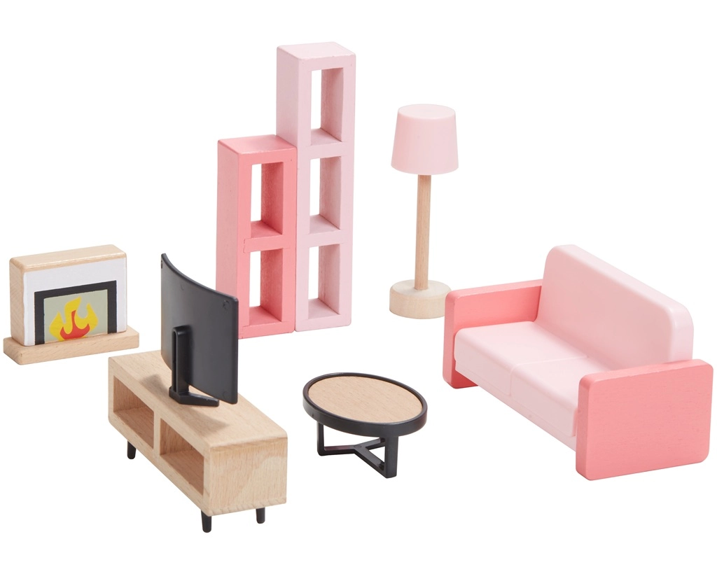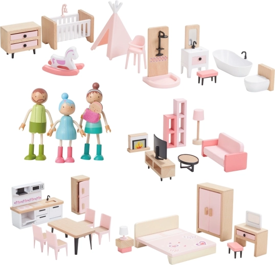 Αυτό το ευέλικτο σετ επίπλων για κουκλόσπιτο προσφέρει όσα χρειάζονται τα παιδιά για να δημιουργήσουν ένα ζεστό σπίτι για τις φιγούρες τους. Περιλαμβάνει εξοπλισμό για κρεβατοκάμαρα, κουζίνα, σαλόνι, μπάνιο και παιδικό δωμάτιο σε αρμονικό συνδυασμό φυσικού ξύλου και απαλών ροζ πινελιών. Περιλαμβάνεται και ολόκληρη η οικογένεια με εύκαμπτα άκρα για αυθεντικές σκηνές και παιχνίδι ρόλων.