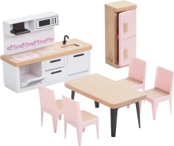 Χάρη στο ποιοτικό ξύλο, την λεία επεξεργασία και τις μελετημένες λεπτομέρειες (πόρτες που ανοίγουν, συρτάρια, αξεσουάρ), αυτό το σετ είναι εξαιρετική επιλογή για μακρόχρονο και ασφαλές παιχνίδι. Υποστηρίζει την ανάπτυξη της φαντασίας, την αφήγηση ιστοριών και την οφθαλμοχειρική συντονιστική ικανότητα.