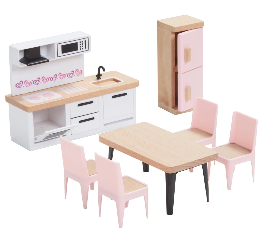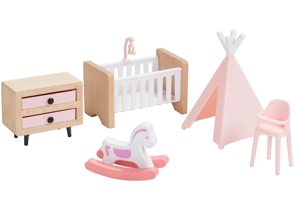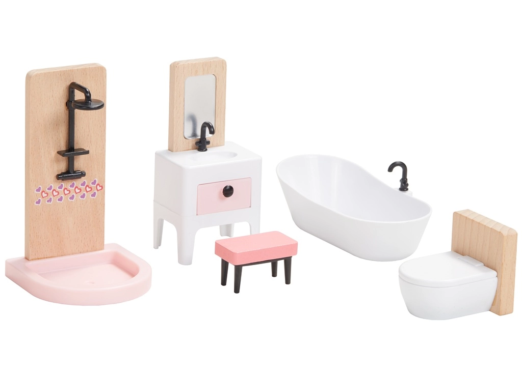 Το σετ 5 σε 1 εξοπλίζει κρεβατοκάμαρα, κουζίνα, σαλόνι, μπάνιο και παιδικό δωμάτιο – απλώς ανοίξτε και αρχίστε να παίζετε. Ιδανικός αρχικός εξοπλισμός για το πρώτο κουκλόσπιτο.