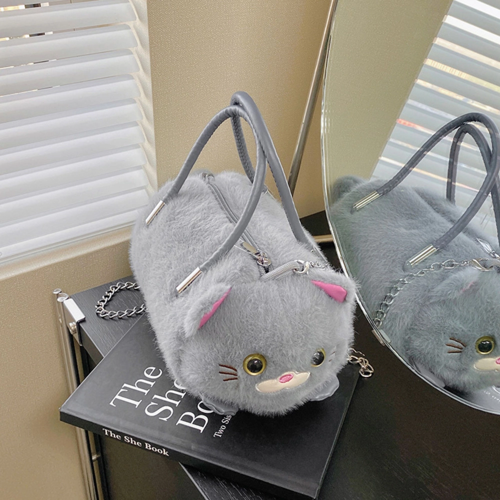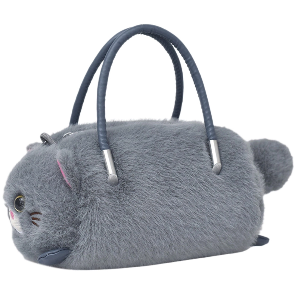Αυτή η λούτρινη τσάντα σε σχήμα γάτας ξεχωρίζει με την απαλή υφή και τις χαριτωμένες λεπτομέρειες – αυτάκια, ματάκια και μυτούλα. Το kompakt μέγεθος είναι ιδανικό για κλειδιά, τηλέφωνο, πορτοφόλι και άλλα απαραίτητα, ενώ το φερμουάρ κρατά το περιεχόμενο ασφαλές.