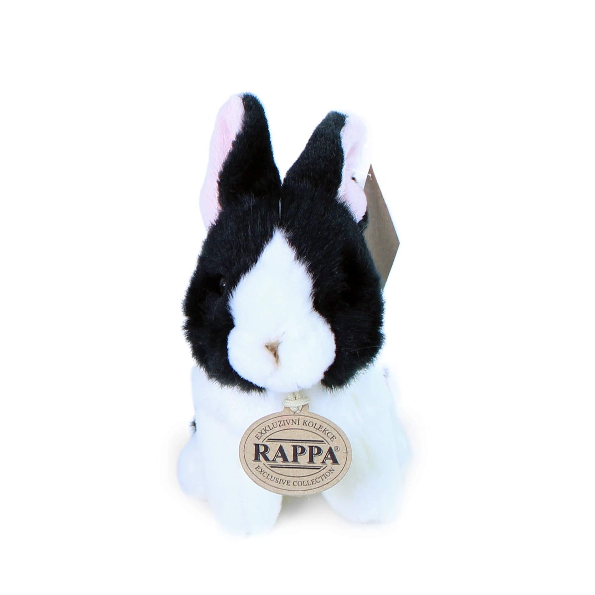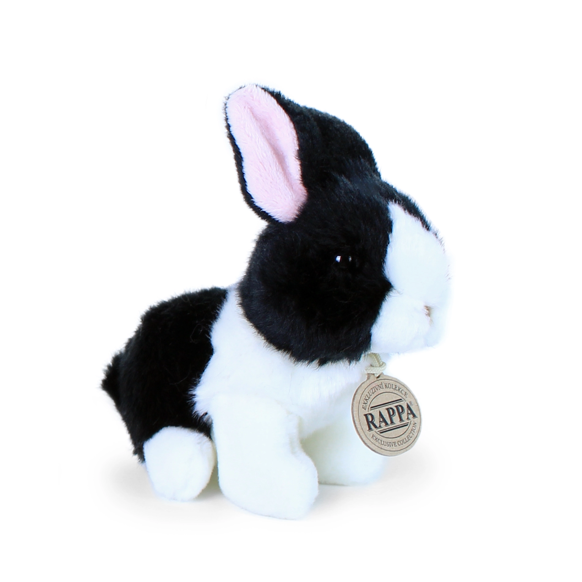 Χαριτωμένο λευκό‑μαύρο λούτρινο κουνελάκι ύψους 16 cm από την αποκλειστική συλλογή της RAPPA, που θα σας ενθουσιάσει με την ρεαλιστική του εμφάνιση και το απαλό, eco‑friendly υλικό. Χάρη στην χειροποίητη κατασκευή μοιάζει ζωντανό και είναι ασφαλές ακόμη και για νεογέννητα χάρη στη γέμιση από ανακυκλωμένα μπουκάλια PET.