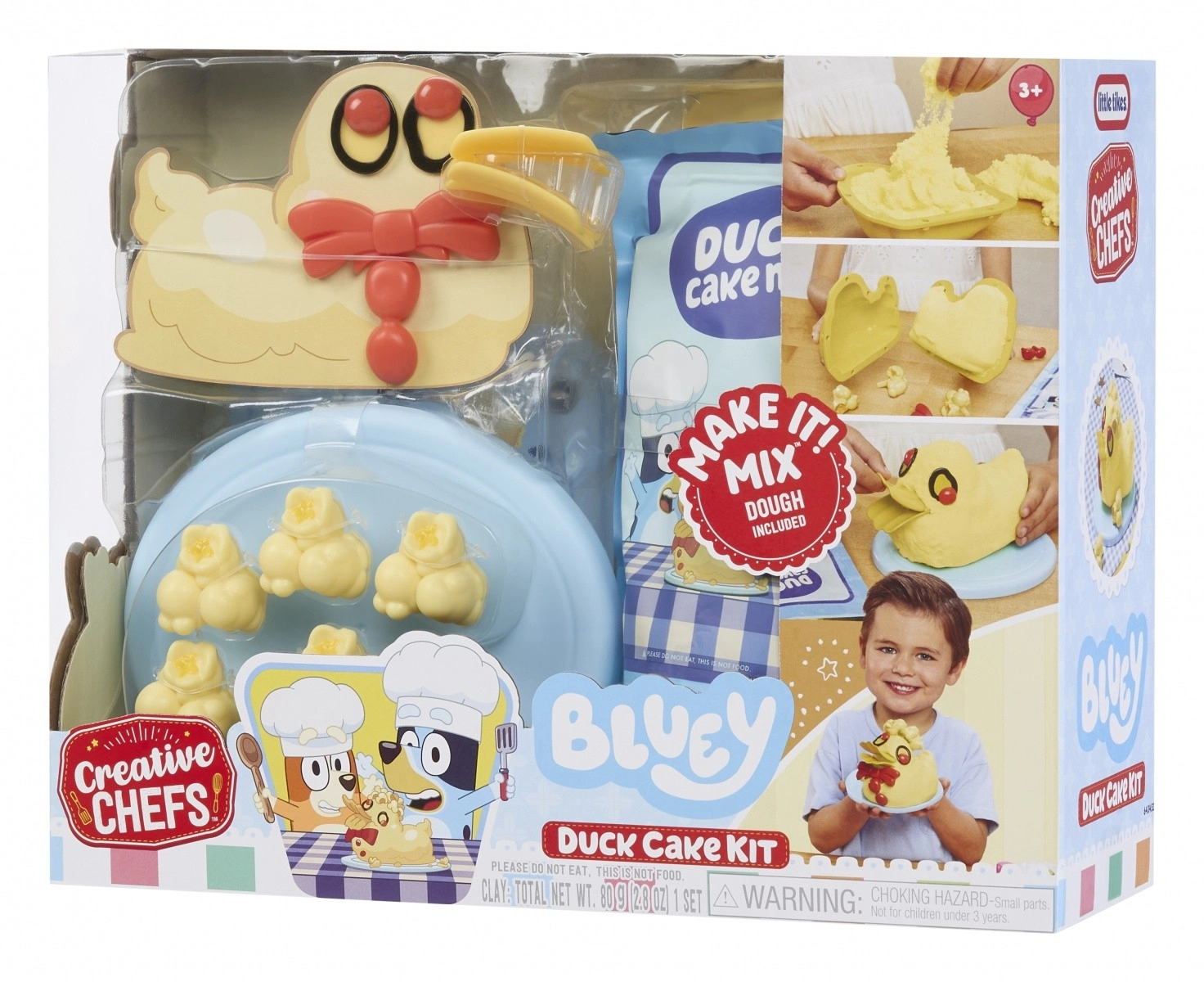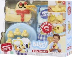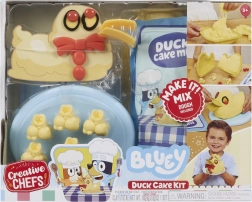 Το σετ CREATIVE CHEFS BLUEY – Τούρτα «Πάπια» προσφέρει στα παιδιά ώρες διασκέδασης και καλλιεργεί τη φαντασία τους. Περιλαμβάνει 15 ρεαλιστικά κουζινικά αξεσουάρ, φόρμα σε σχήμα παπάκια και πλάσιμη μάζα Make It! Mix. Περιέχει επίσης εικονογραφημένη συνταγή, που μαθαίνει στα παιδιά να ακολουθούν απλές οδηγίες και ενισχύει δημιουργικό παιχνίδι και role-play.
