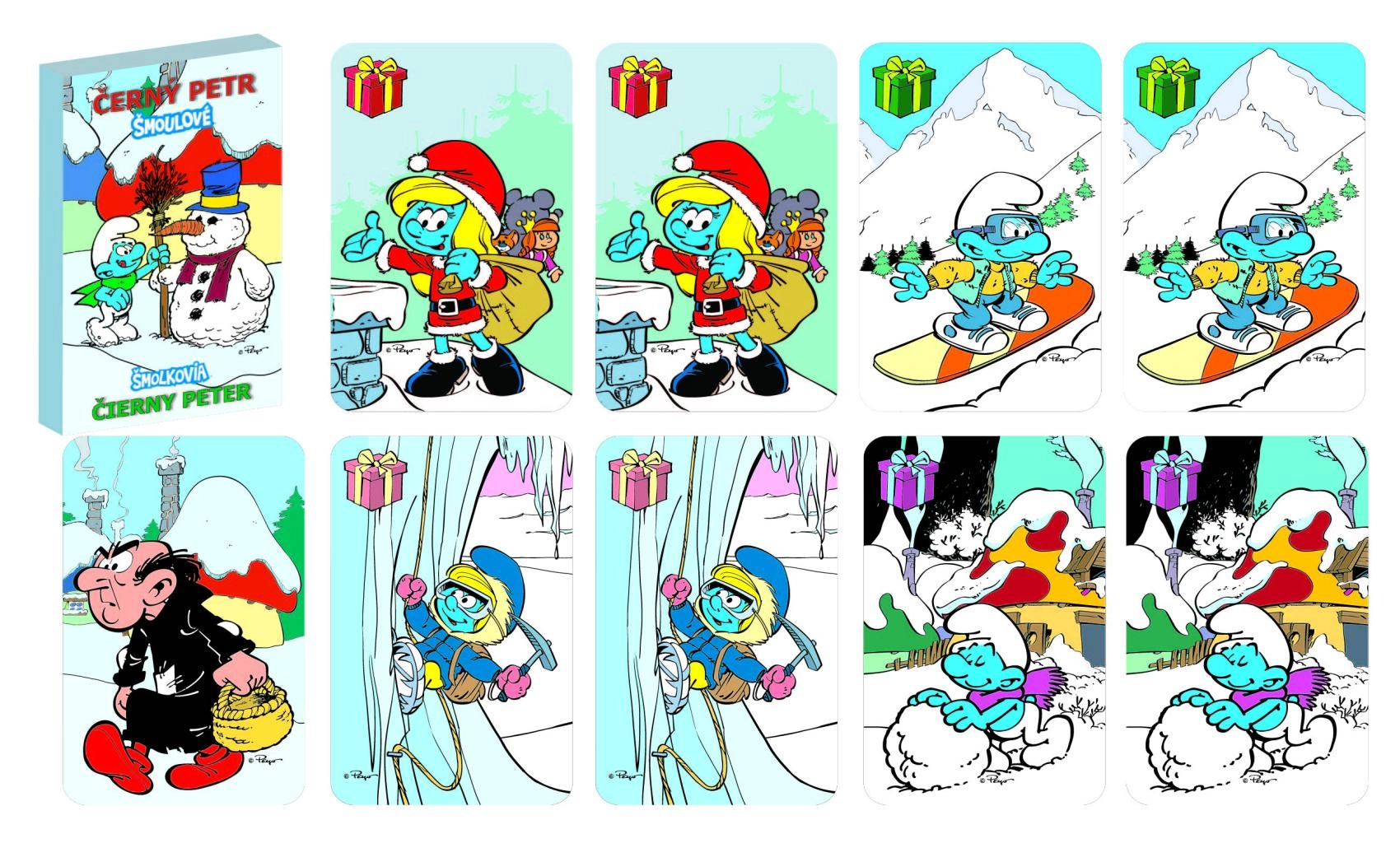 Το παραδοσιακό παιχνίδι καρτών Μαύρος Πέτρος με χειμωνιάτικο θέμα Στρουμφάκια θα ευχαριστήσει παιδιά και ενήλικες. Οι παίκτες αναζητούν όμοια ζευγάρια, ενώ προσπαθούν να αποφύγουν την κάρτα του Μαύρου Πέτρου. Απλοί κανόνες, γρήγοροι γύροι και χαρούμενες εικονογραφήσεις των ΣΤΡΟΥΜΦ κάνουν αυτό το παιχνίδι ιδανική επιλογή για οικογενειακές βραδιές και ταξίδια.