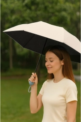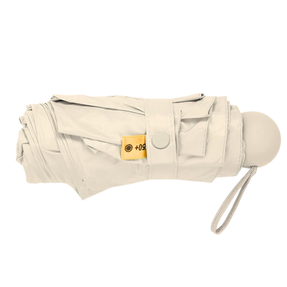 Στιλάτη μπεζ πτυσσόμενη ομπρέλα, ιδανικός σύντροφος για μεταβαλλόμενο καιρό. Χάρη στην επίστρωση με UPF 50+ μπλοκάρει αποτελεσματικά την επιβλαβή UV ακτινοβολία, ώστε να προστατεύει όχι μόνο στη βροχή αλλά και σε έντονο ήλιο. Οι συμπαγείς διαστάσεις και η ελαφριά κατασκευή εξασφαλίζουν ότι χωρά εύκολα σε τσάντα, σακίδιο ή τσέπη μεγαλύτερου μπουφάν.