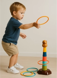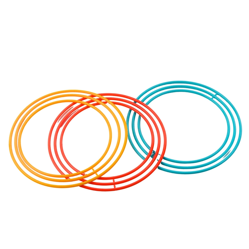 Το σετ περιλαμβάνει 9 κρίκους (3 μεγάλους, 3 μεσαίους, 3 μικρούς) για ρυθμιζόμενα επίπεδα δυσκολίας και διασκεδαστικό ανταγωνισμό.