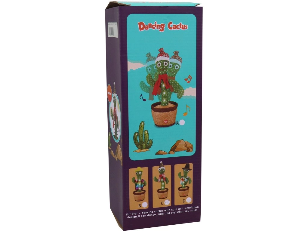 Αυτός ο χαρούμενος κάκτος είναι ο ιδανικός σύντροφος για στιγμές διασκέδασης. Μόλις ενεργοποιηθεί, αρχίζει να χορεύει, να φωτίζει και μπορεί να επαναλαμβάνει ό,τι ακούει. Χάρη στον απλό χειρισμό, είναι κατάλληλος για παιδιά από 3 ετών και αποτελεί εξαιρετική ιδέα για πρωτότυπο δώρο.