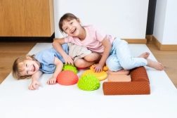 Η αισθητηριακή ισορροπιστική διαδρομή σε απαλές παστέλ αποχρώσεις είναι ιδανική για παιδιά και ενήλικες για την ανάπτυξη ισορροπίας, σταθερότητας και χωρικής αντίληψης. Οι ποικίλες επιφάνειες – από απαλές προεξοχές έως πιο έντονα σημεία μασάζ – προσφέρουν πλούσια απτική διέγερση των πελμάτων και συμβάλλουν στη σωστή στάση του σώματος.