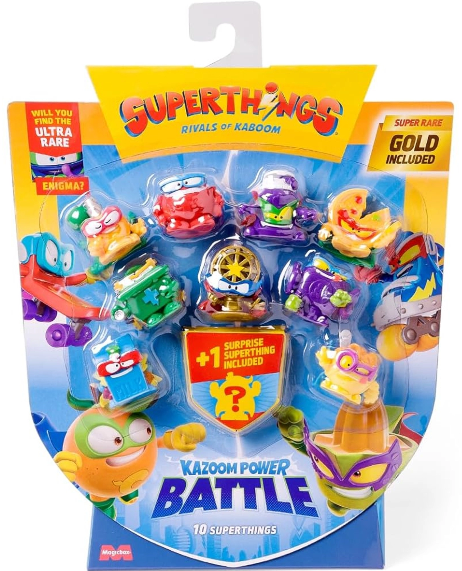 Το σετ SuperThings Kazoom Power Battle προσφέρει δυναμική διασκέδαση για μικρούς συλλέκτες. Στη συσκευασία θα βρείτε 9 διαφορετικές φιγούρες και επιπλέον 1 μυστική φιγούρα, που μπορεί να είναι κοινή, σπάνια ή εξαιρετικά σπάνια. Στη συνολική σειρά διατίθενται πάνω από 80 χαρακτήρες – θα καταφέρετε να αποκτήσετε την υπερ-σπάνια φιγούρα Enigma;