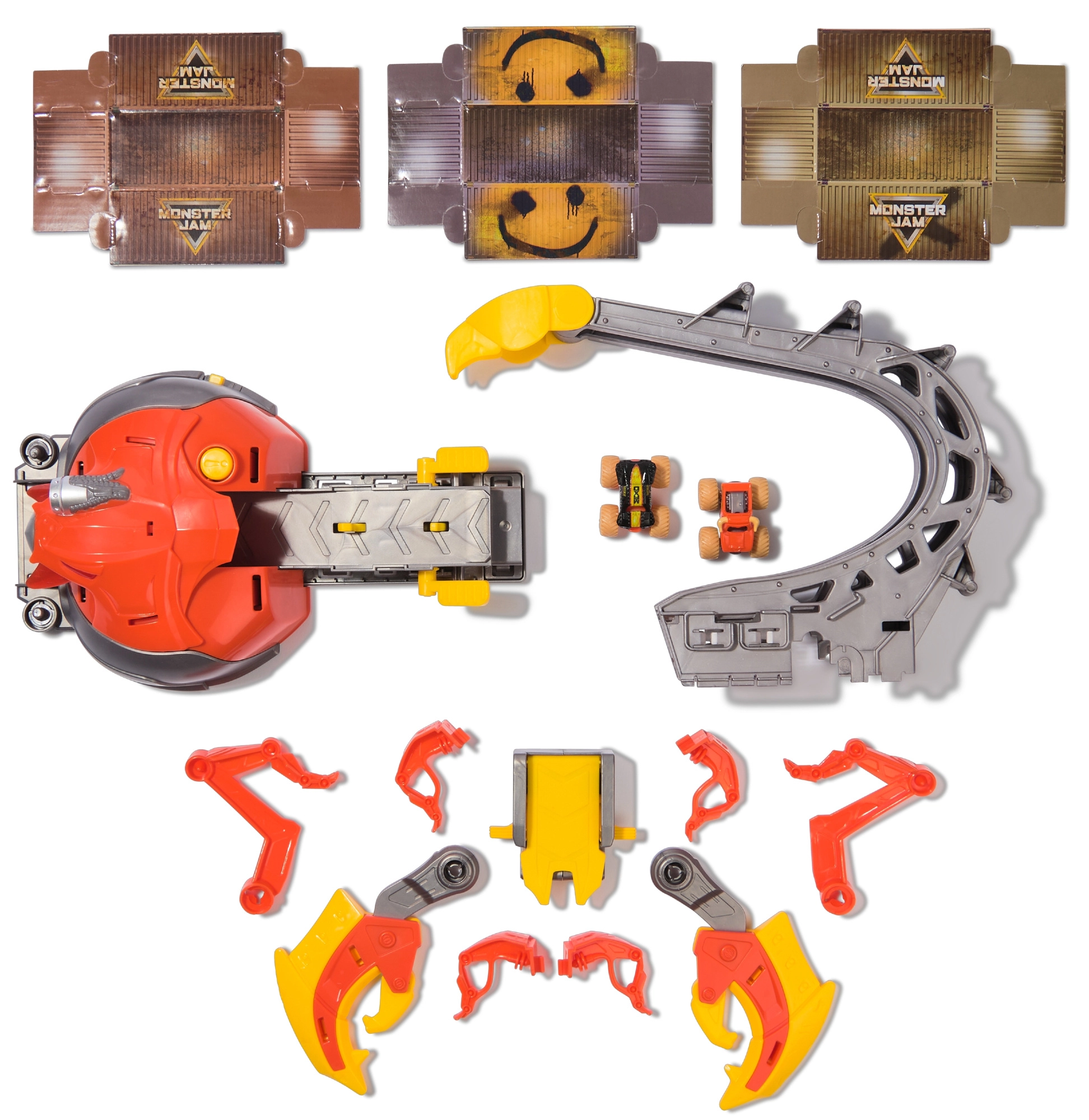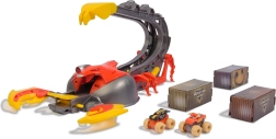 Ο έξυπνος και ασφαλής σχεδιασμός προστατεύει από ακούσια εκτόξευση – η κίνηση σταματά αυτόματα κατά την ανύψωση. Μετά το παιχνίδι, όλο το σετ μετατρέπεται σε κουτί αποθήκευσης για έως και 12 μίνι φορτηγά, ώστε όλα να είναι έτοιμα για την επόμενη δράση. Περιλαμβάνονται δύο μεταλλικά μίνι μοντέλα EL TORO LOCO και MAX-D με αυθεντικές λεπτομέρειες.