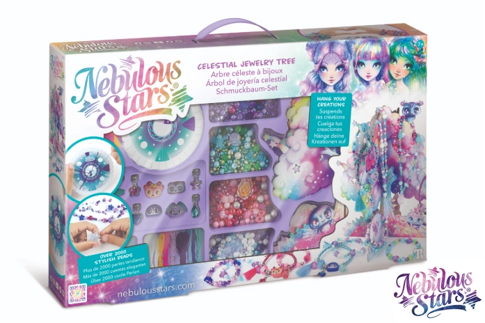 Ανακάλυψε τον κόσμο της δημιουργίας με το δημιουργικό σετ Nebulous Stars, που θα ενθουσιάσει κάθε μικρό σχεδιαστή κοσμημάτων. Η συσκευασία περιλαμβάνει όλα όσα χρειάζονται για την κατασκευή μοναδικών βραχιολιών και κολιέ – από πολύχρωμα κορδόνια και χάντρες μέχρι στιλάτα μενταγιόν. Τα έτοιμα κοσμήματα μπορούν να κρεμαστούν κομψά στο Αστρικό Δέντρο, που λειτουργεί ως όμορφη βάση και διακόσμηση δωματίου.