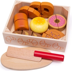 Σας παρουσιάζουμε το ξύλινο σετ κοπής αρτοσκευασμάτων, σχεδιασμένο για όλα τα παιδιά που θέλουν να εξερευνήσουν τη μαγεία του κόσμου της κουζίνας. Αυτό το πολύχρωμο σετ περιλαμβάνει διάφορα σχήματα αρτοσκευασμάτων όπως κρουασάν, ντόνατ και ψωμάκια, τα οποία μπορούν να «κοπούν» χάρη στο παρεχόμενο ξύλινο μαχαίρι. Τα παιχνίδια είναι κατασκευασμένα από ποιοτικό ξύλο και συνδέονται με βέλκρο, επιτρέποντας διαδραστικό και ρεαλιστικό παιχνίδι.