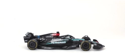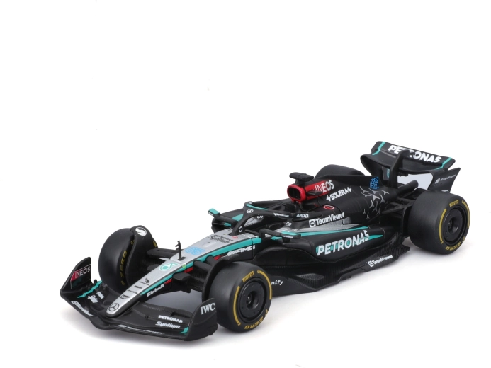 Χάρη στις ρεαλιστικές εκτυπώσεις χορηγών, το μαύρο “stealth” livery με τιρκουάζ πινελιές και τους ελεύθερα περιστρεφόμενους τροχούς, το μοντέλο είναι εξαιρετικό συμπλήρωμα για βιτρίνα και δώρο για φίλους της F1 και του George Russell. Η συμπαγής κλίμακα 1:43 διευκολύνει την έκθεση και τη συλλογή ολόκληρης της σειράς της ομάδας.