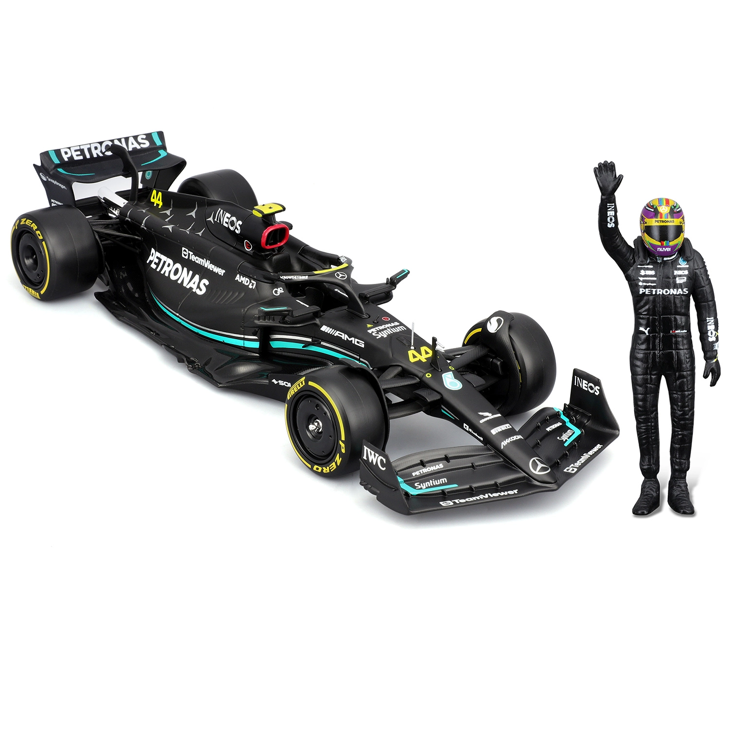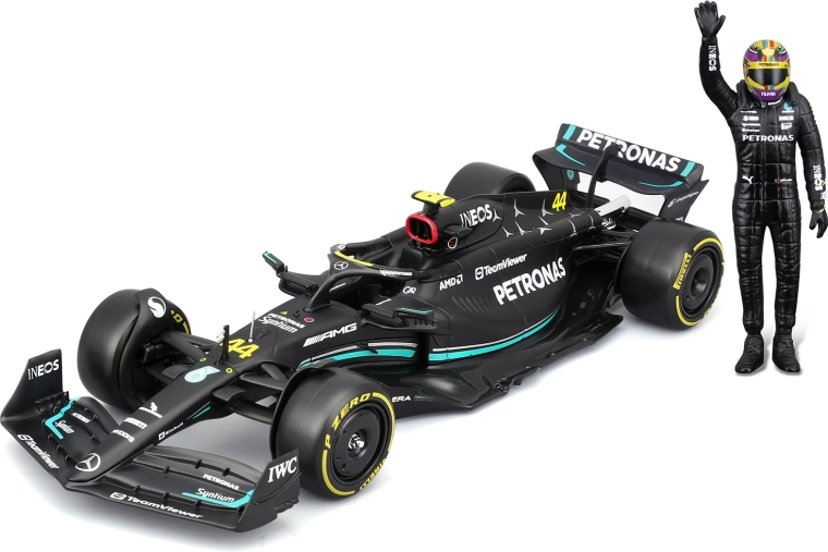 - Φιγούρα οδηγού LEWIS HAMILTON για σκηνική έκθεση δίπλα στο όχημα.