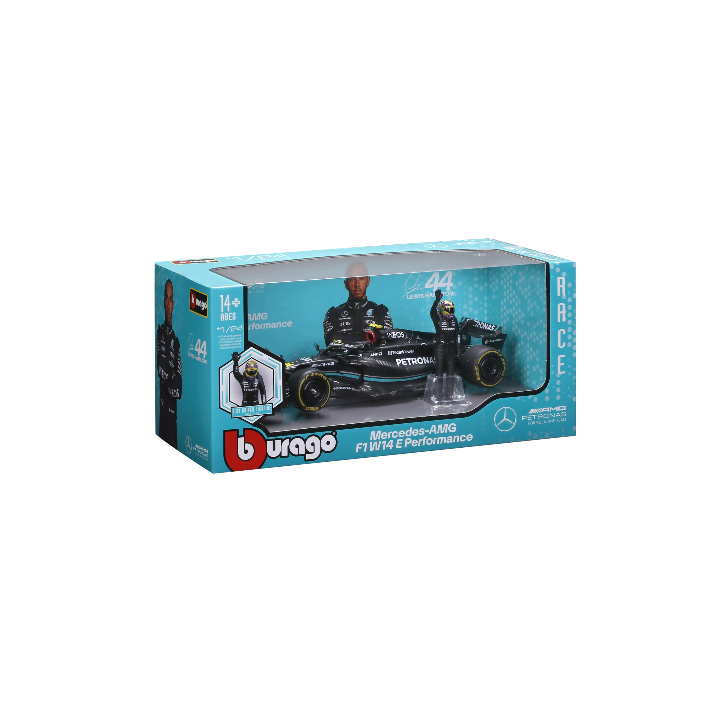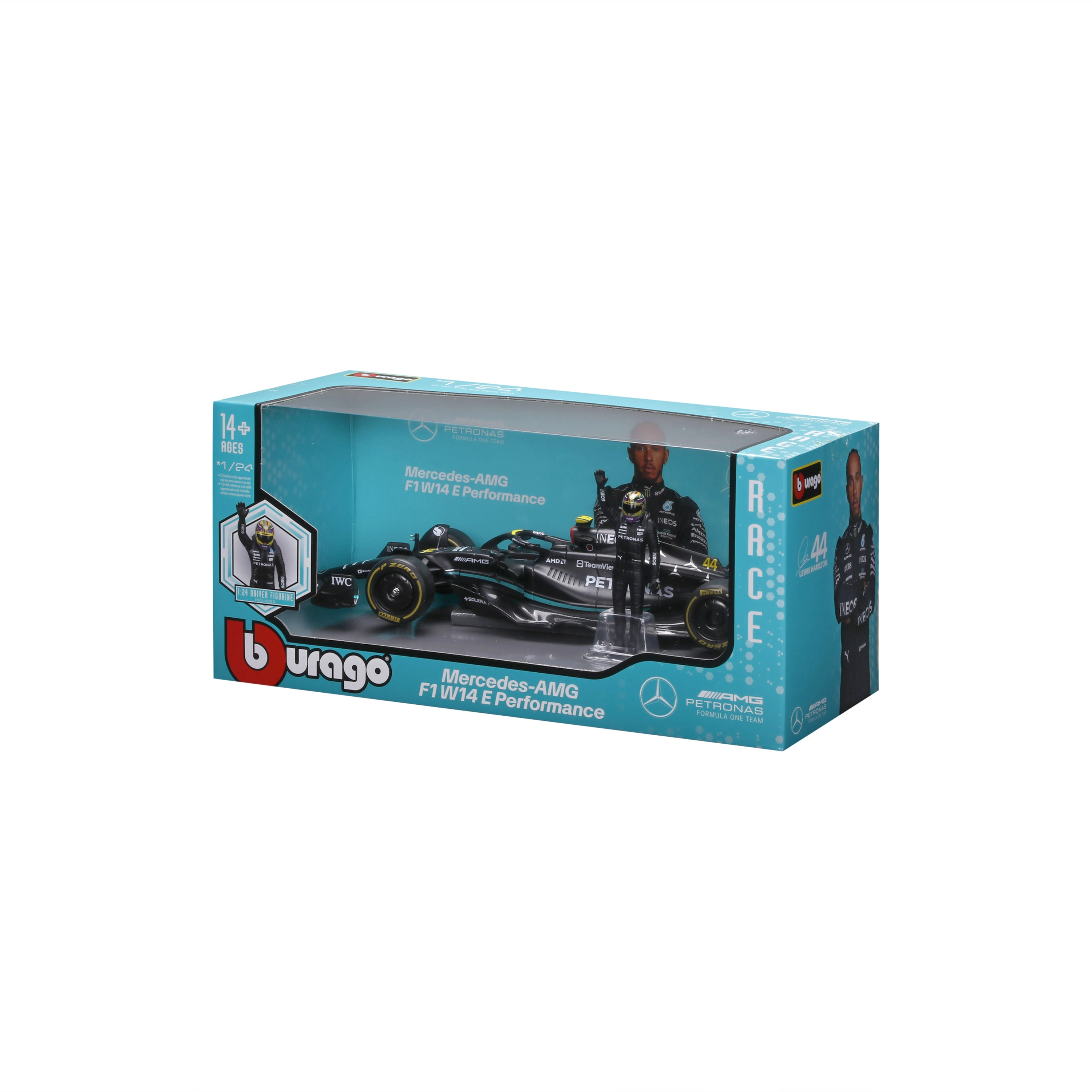 Εμβληματικό μονοθέσιο MERCEDES-AMG F1 W14 E σε κλίμακα 1:24 από τη μάρκα Bburago, προσφέρει πιστή ρέπλικα του αυτοκινήτου με αριθμό 44 του οδηγού LEWIS HAMILTON. Το μοντέλο εντυπωσιάζει με λεπτομερειακή κατασκευή, ρεαλιστική βαφή και λογότυπα χορηγών, περιστρεφόμενους τροχούς και τη συμπεριλαμβανόμενη φιγούρα οδηγού. Ιδανικό για συλλέκτες και ως στυλάτο δώρο σε συσκευασία δώρου.