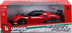 Ποιοτικό συλλεκτικό μοντέλο του Ferrari SF90 XX Stradale σε κλίμακα 1:18 με ανοιγόμενα μέρη, λεπτομερές εσωτερικό και περιστρεφόμενους τροχούς. Ιδανικό για βιτρίνα αλλά και ελαφρύ παιχνίδι, εντυπωσιάζει με τις πιστές αναλογίες, τη σπορ αεροδυναμική και την ποιοτική κατασκευή της Bburago.