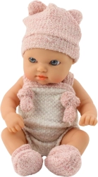 Αυτή η χαριτωμένη κούκλα μωρό με μπεζ κορμάκι και ροζ λεπτομέρειες μοιάζει με αληθινό μωρό χάρη στα απαλά σμιλεμένα χαρακτηριστικά προσώπου και τις αναλογίες της. Το μαλακό, ευχάριστο υλικό και το συμπαγές μέγεθος των 18 cm εφαρμόζουν τέλεια στα παιδικά χεράκια.