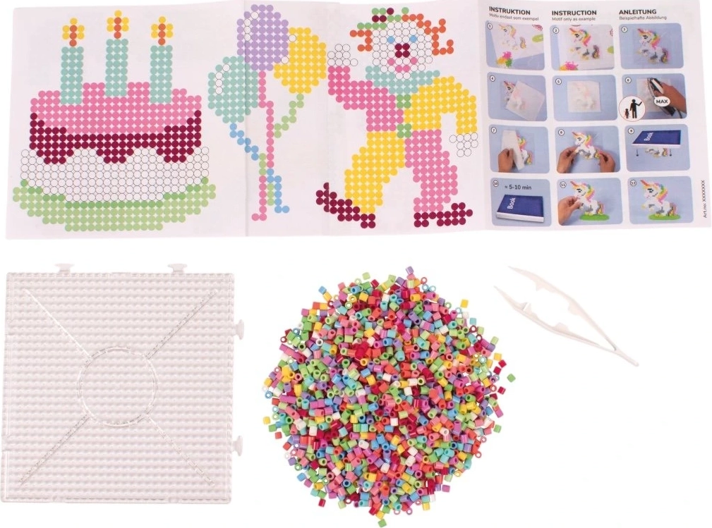 Πλήρες δημιουργικό σετ για παιδιά και αρχάριους: στη πρακτική βαλίτσα θα βρείτε 12.000 πολύχρωμες χάντρες σιδερώματος, τετράγωνη πλακέτα, έγχρωμα πρότυπα, χαρτί σιδερώματος και τσιμπιδάκι. Υποστηρίζει τη λεπτή κινητικότητα, τη συγκέντρωση και τη δημιουργικότητα – δημιουργήστε με βάση τα πρότυπα ή τη δική σας φαντασία.