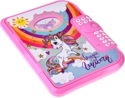 Αυτό το ροζ ημερολόγιο με μαγευτικό θέμα μονόκερου είναι ιδανικό για παιδιά που θέλουν να κρατούν τις σκέψεις και τους θησαυρούς τους ασφαλείς. Ανοίγει με την εισαγωγή 4ψήφιου PIN κωδικού, ώστε οι σημειώσεις να μένουν μόνο για τον πραγματικό κάτοχο. Χάρη στον αγγλόφωνο φωνητικό οδηγό ο χειρισμός είναι διαισθητικός και παιχνιδιάρικος.