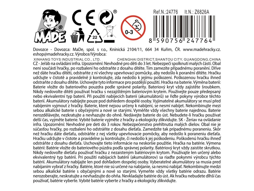 Το χειριστήριο τύπου Open touch εξασφαλίζει διαισθητικό και ομαλό έλεγχο. Ο γερανός τροφοδοτείται από μπαταρίες Li‑ion 3,7 V / AA και διατίθεται σε ανοιχτή συσκευασία σε ένα μονοχρωματικό σχέδιο.