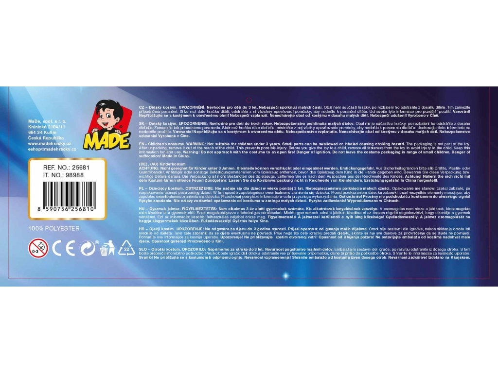 Ξυπνήστε τη φαντασία των παιδιών με το μαγικό κοστούμι της Σταχτοπούτας! Αυτό το αποκριάτικο φόρεμα για ύψος 110–120 cm θα ξετρελάνει τις μικρές πριγκίπισσες με τον απαλό σχεδιασμό και την άνετη γραμμή του. Περιλαμβάνει κολιέ και στεφάνι/κορόνα για τα μαλλιά, ώστε το παιδί σας να είναι έτοιμο για απόκριες, παιδικό πάρτι και σχολική εκδήλωση.