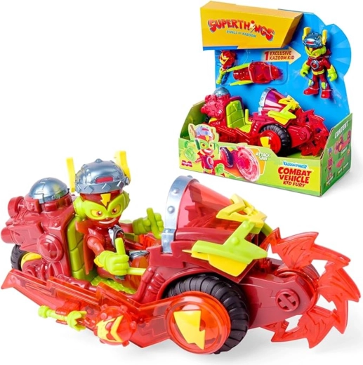 Ο αγαπημένος κόσμος των SUPERTHINGS ζωντανεύει σε ένα δυναμικό σετ εμπνευσμένο από τη σειρά «Kazoom Power». Ο ήρωας ρίχνεται στη δράση με ένα ανθεκτικό όχημα, έτοιμος να χρησιμοποιήσει μια ειδική επίθεση και να προστατεύσει το Kaboom City. Η ανοιγόμενη είσοδος του οχήματος και το περιστρεφόμενο τρυπάνι μάχης προσφέρουν πραγματικά έντονες εμπειρίες παιχνιδιού.