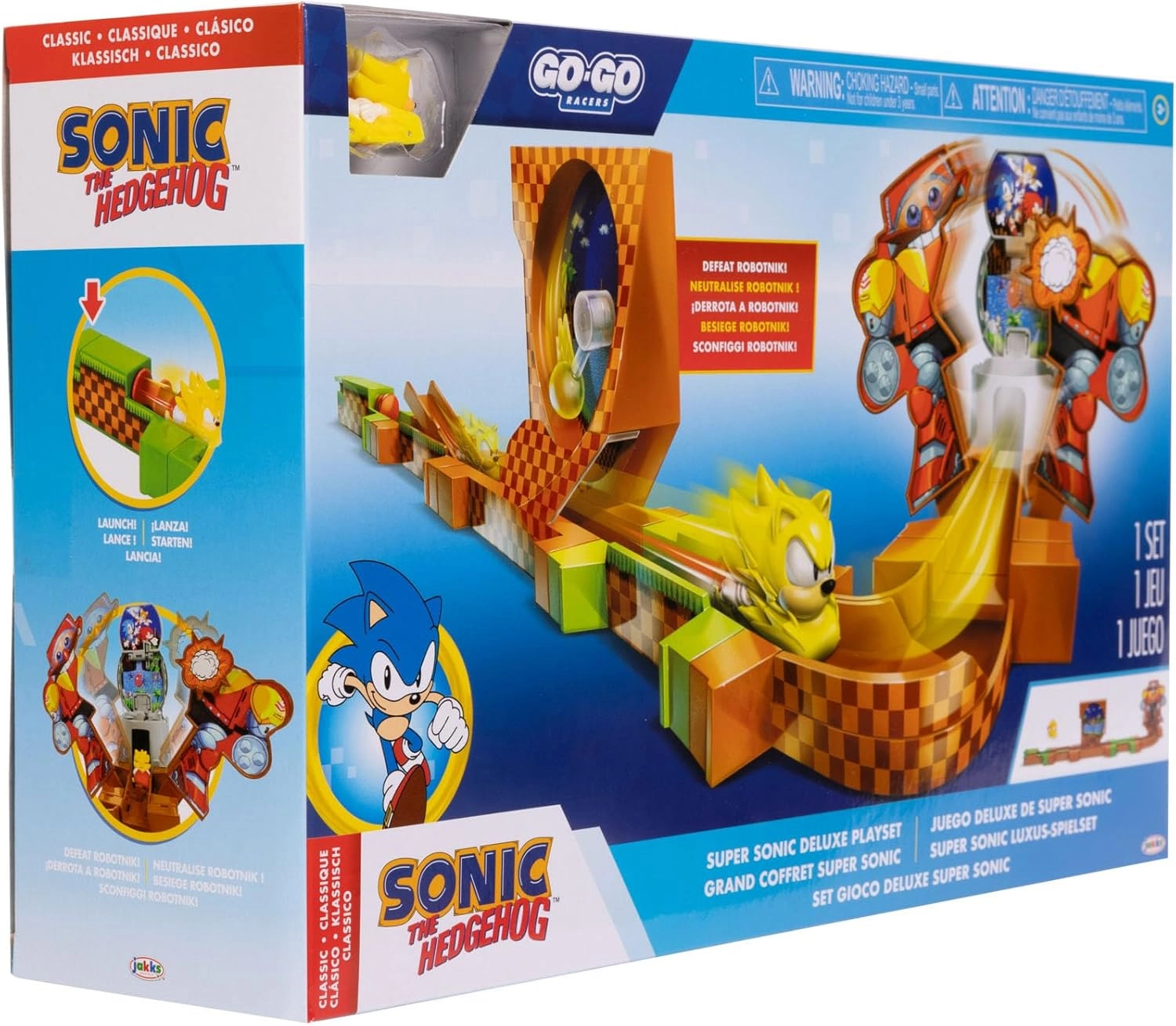 Η αγωνιστική πίστα, εμπνευσμένη από τα παιχνίδια SONIC THE HEDGEHOG από τη μάρκα Jakks Pacific, μεταφέρει τη δυναμική των βιντεοπαιχνιδιών στο παιδικό δωμάτιο. Η πίστα προσφέρει την εμβληματική λούπα, ράμπες και τελικό εμπόδιο με τον Dr. Eggman, τον οποίο πρέπει να νικήσει ο SONIC.