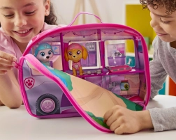 Το πτυσσόμενο τροχόσπιτο μήκους περίπου 30 cm μετατρέπεται όταν ανοίγει σε πλούσια εικονογραφημένο μίνι σπιτάκι με επιφάνεια-πάρκο για πικνίκ και ξεκούραση μετά την αποστολή. Τα παιδιά απολαμβάνουν ιστορίες εμπνευσμένες από τη σειρά χάρη στις φιγούρες Skye, Liberty και Everest με κουνιστά κεφαλάκια και κινητά άκρα.