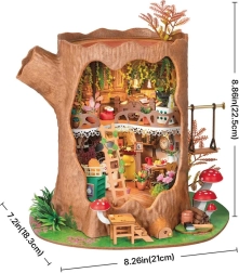 Μπείτε στον κόσμο της φαντασίας και δημιουργήστε τη δική σας Δασική καλύβα από κούτσουρο – ένα διώροφο μίνι σπιτάκι με ξύλινα έπιπλα, κουζίνα, κρεβατοκάμαρα, διακοσμήσεις, κήπο με μανιτάρια και εξωτερική κούνια. Με το άναμμα των LED φώτων, το μοντέλο μετατρέπεται σε συναρπαστική έκθεση και γίνεται το επίκεντρο σε κάθε ράφι.