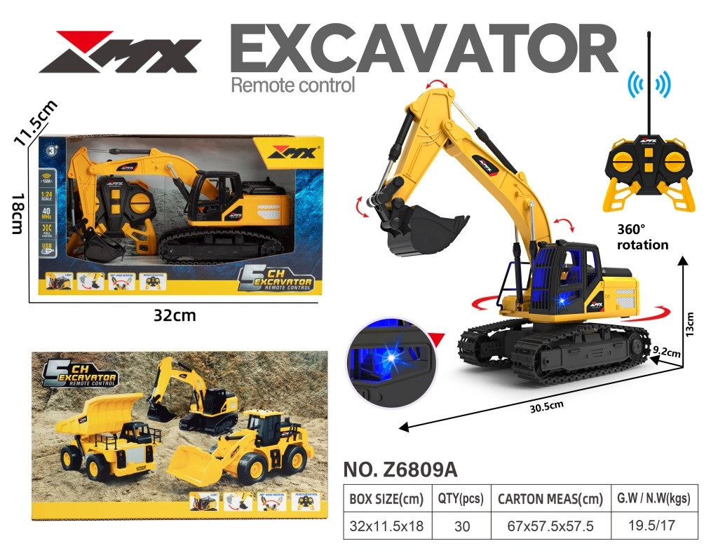 Αυτός ο λεπτομερής RC εκσκαφέας μιμείται πιστά τα πραγματικά κατασκευαστικά μηχανήματα. Το ανθεκτικό ερπυστριοφόρο σασί εξασφαλίζει σταθερότητα και καλή διέλευση από ανώμαλο έδαφος, ενώ η περιστρεφόμενη υπερκατασκευή και ο λειτουργικός κάδος προσφέρουν ρεαλιστικό χειρισμό φορτίου. Το φωτεινό εφέ στην καμπίνα προσθέτει αυθεντικότητα στο παιχνίδι στο λυκόφως.