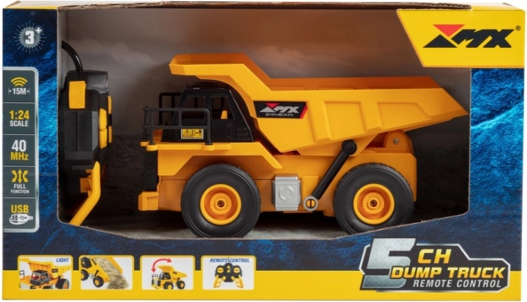 Ρεαλιστικό RC ανατρεπόμενο φορτηγό σε κλίμακα 1:24 που εντυπωσιάζει με την λεπτομερή κατασκευή και την πλήρως λειτουργική καρότσα. Έλεγχος στη συχνότητα 40 MHz, εμβέλεια 10–15 m, 5καναλο τηλεχειριστήριο, φωτεινά εφέ και επαναφορτιζόμενη μπαταρία 3,7 V εξασφαλίζουν διασκεδαστική και ομαλή οδήγηση με ταχύτητα 2–3 km/h.