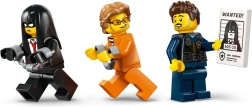 Περιλαμβάνεται κόκκινη μοτοσικλέτα με αλυσίδα και γάντζο για δραματικές αποδράσεις και επεμβάσεις. Το σετ περιλαμβάνει 3 μινιφιγούρες – αστυνομικό με ένταλμα σύλληψης και αφίσα καταζητούμενου και δύο κακοποιούς (συμπεριλαμβανομένου χαρακτήρα με πορτοκαλί στολή κρατουμένου). Χάρη στην εφαρμογή LEGO Builder, τα παιδιά μπορούν να χτίζουν με τη βοήθεια διαισθητικού 3D οδηγού.