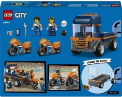 Ανακαλύψτε το σετ δράσης για μικρούς αγωνιζόμενους: Το LEGO City φορτηγό μεταφοράς μοτοσικλετών προσφέρει επίπεδη καρότσα με ράμπα, 2 σπορ μοτοσικλέτες, 2 μινιφιγούρες αγωνιζομένων με κράνη και μαζικά λαστιχένια ελαστικά για σταθερή οδήγηση. Ιδανικό για παιδιά από 4 ετών χάρη στο τουβλάκι για αρχάριους και τις απλές οδηγίες.