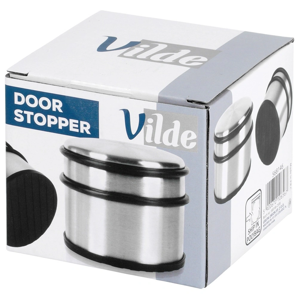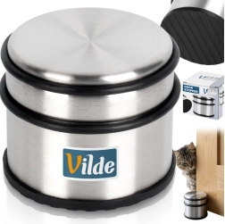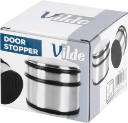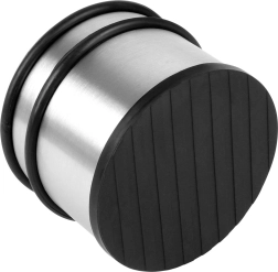 Κομψό και βαρύ στοπερ πόρτας από ανοξείδωτο ατσάλι σε ασημί χρώμα, ιδανικό για διαμέρισμα, σπίτι ή γραφείο. Το υψηλό βάρος 1,1 kg εξασφαλίζει σταθερότητα, ώστε η πόρτα να μένει ακριβώς εκεί που τη χρειάζεστε. Οι λαστιχένιοι δακτύλιοι περιμετρικά προστατεύουν την πόρτα από κρούσεις και η λαστιχένια βάση αποτρέπει την ολίσθηση και προστατεύει το δάπεδο.