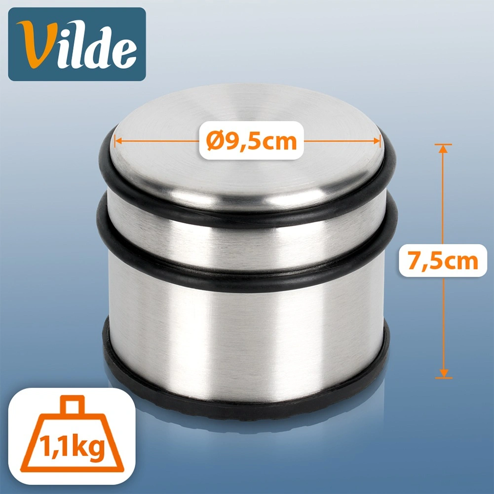 Ανθεκτικός ανοξείδωτος στοπερ πόρτας με βάρος 1,1 kg κρατά με ασφάλεια την πόρτα στη θέση της και προστατεύει τοίχους και δάπεδο. Χάρη στις συμπαγείς διαστάσεις 9,5 × 7,5 cm και στη μοντέρνα εμφάνιση, ταιριάζει σε κάθε εσωτερικό χώρο. Αντιολισθητική λαστιχένια βάση και λαστιχένιοι αποσβεστήρες που μειώνουν τους κραδασμούς και αποτρέπουν τις γρατσουνιές. Χωρίς τρύπημα και κόλλημα – απλώς τοποθετήστε το στο δάπεδο.