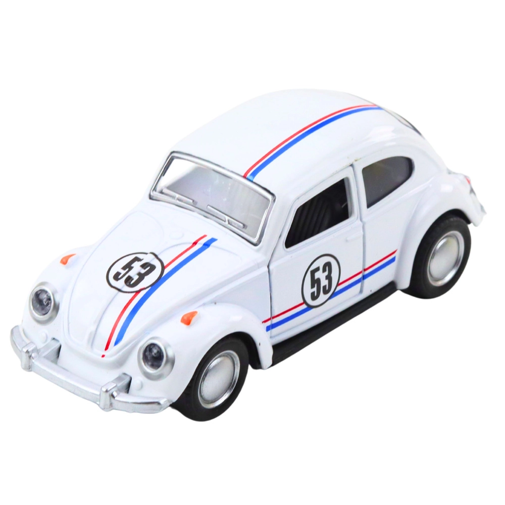 Κομψό μεταλλικό μοντέλο εμπνευσμένο από τον θρυλικό «Σκαραβαίο» σε κλίμακα 1:32 που ενθουσιάζει παιδιά και συλλέκτες. Προσφέρει μεταλλικό αμάξωμα, συναρπαστικό μηχανισμό pull-back για γρήγορη κίνηση, ανοιγόμενες πόρτες και λεπτομερή κατασκευή σε κομψό λευκό χρώμα.