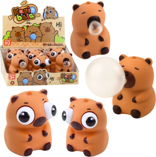 Χαριτωμένο αντιστρες πιεζόμενο παιχνίδι σε σχήμα καπιμπάρα για παιδιά και ενήλικες. Με το πάτημα εμφανίζεται μια διάφανη φούσκα ή πετάγονται μεγάλα μάτια, προσφέροντας άμεση ανακούφιση από την ένταση και διασκέδαση. Κατασκευασμένο από μαλακό, ελαστικό υλικό που μετά το πάτημα επιστρέφει στο αρχικό του σχήμα. Ιδανικό για σχολείο, γραφείο και ταξίδια.