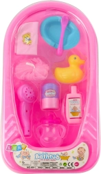 Ένα παιχνιδιάρικο σετ μπάνιου για κούκλες με ροζ μικρή μπανιέρα και πλούσια αξεσουάρ προσφέρει στα παιδιά ρεαλιστική διασκέδαση στη φροντίδα της κούκλας. Καλλιεργεί τη δημιουργικότητα, την ενσυναίσθηση και τη λεπτή κινητικότητα, ενώ χάρη στην ασφαλή πλαστική κατασκευή και τα ζωηρά χρώματα προσκαλεί σε πολύωρο παιχνίδι.
