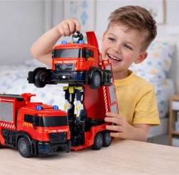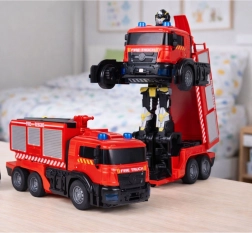 Διαδραστικό πυροσβεστικό όχημα που μεταμορφώνεται με εντολή σε ρομπότ, προσφέροντας στα παιδιά διπλάσια διασκέδαση. Ο χειρισμός μέσω τηλεχειριστηρίου, η αυτόματη μεταμόρφωση, τα φωτεινά και ηχητικά εφέ και το ράντισμα νερού δημιουργούν ρεαλιστικές αποστολές διάσωσης. Ανθεκτική κατασκευή, λάστιχα από καουτσούκ και εύκολος χειρισμός που ενισχύουν τη δημιουργική chơi και την ανάπτυξη της κινητικότητας.