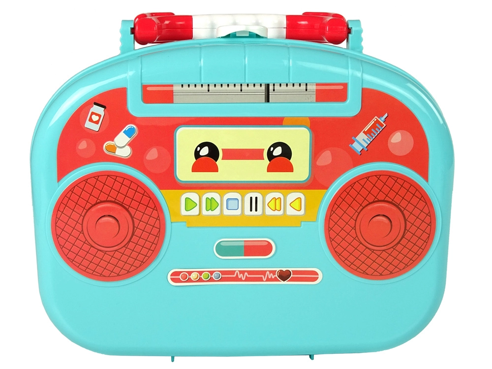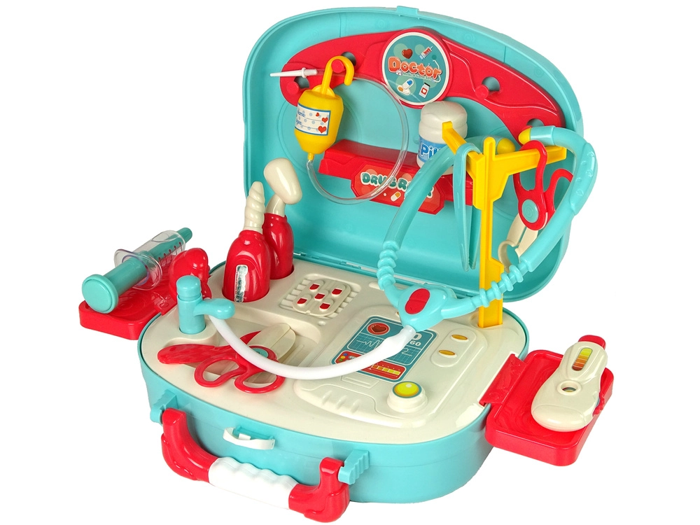 Διασκεδαστικό και εκπαιδευτικό ιατρικό σετ για παιδιά σε πρακτικό τιρκουάζ βαλιτσάκι που ενισχύει τη φαντασία, τη μάθηση και την υπέρβαση του φόβου για τον γιατρό. Περιλαμβάνει στηθοσκόπιο, σύριγγα, θερμόμετρο, ψαλίδι και άλλα αξεσουάρ με ασφαλή, στρογγυλεμένα σχήματα. Ιδανικό δώρο για μικρούς γιατρούς από 3 ετών.