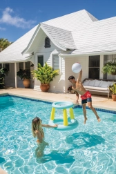 Περιλαμβάνεται ελαφριά φουσκωτή μπάλα που επιπλέει στο νερό – ιδανική για διαγωνισμούς παιδιών και ενηλίκων.