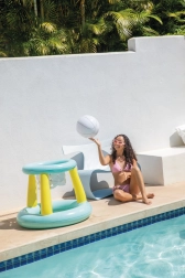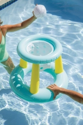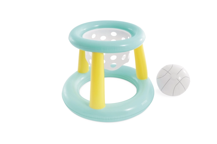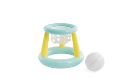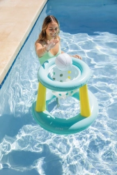 Απολαύστε ώρες διασκέδασης στο νερό με το φουσκωτό καλάθι μπάσκετ για πισίνα. Η πλωτή βάση με δύο δαχτυλίδια και τρεις κίτρινες κολώνες εξασφαλίζει σταθερότητα στην επιφάνεια, ενώ το λευκό διχτάκι συγκρατεί αξιόπιστα την μπάλα. Το ανθεκτικό υλικό PVC είναι ευχάριστο στην αφή και καθαρίζεται εύκολα.