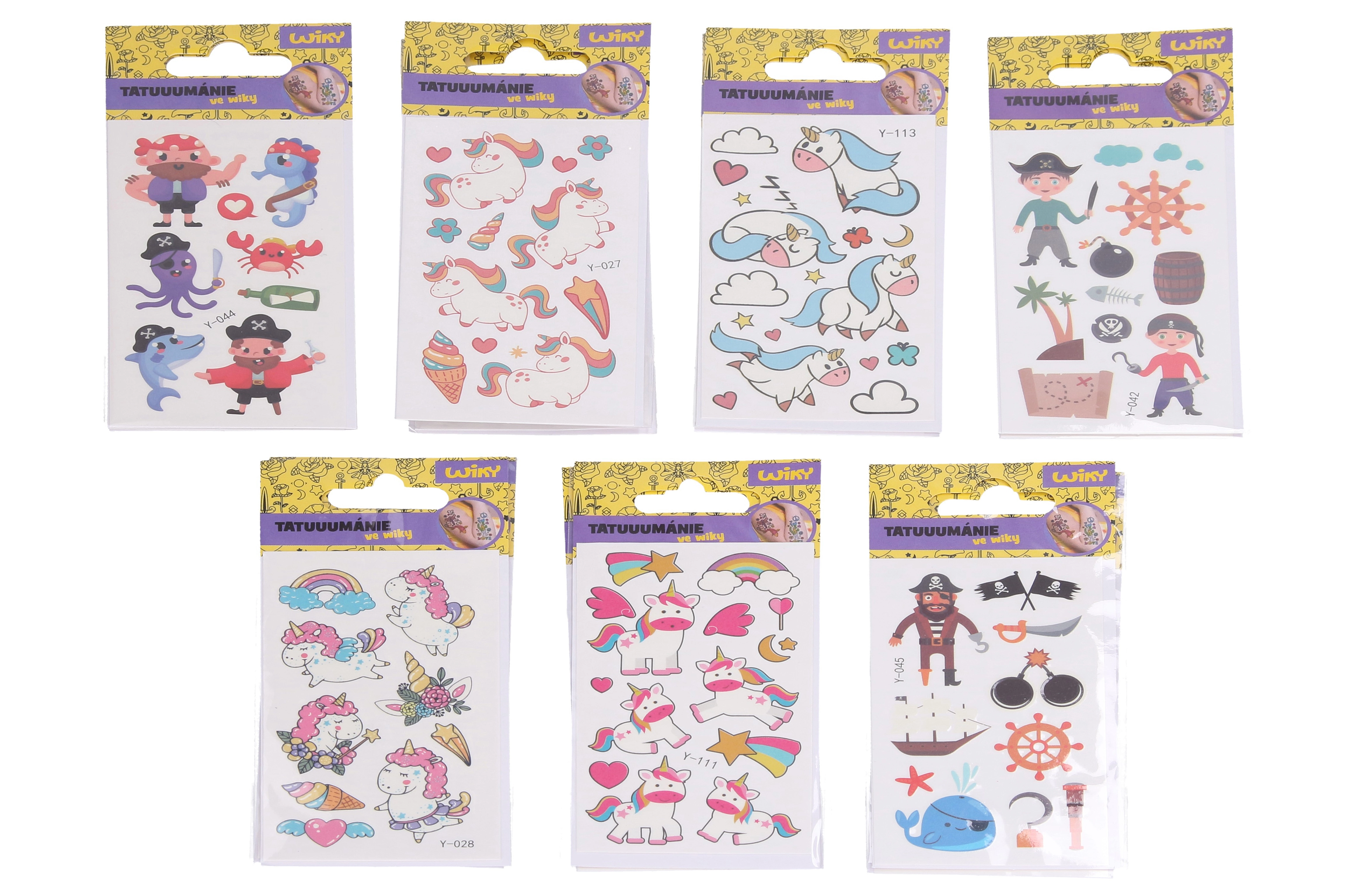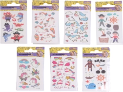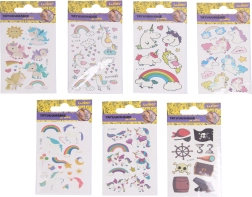 Διασκεδαστικά παιδικά προσωρινά τατουάζ που φωσφορίζουν στο σκοτάδι, θα ενθουσιάσουν τους μικρούς λάτρεις της φαντασίας και της περιπέτειας. Πρακτική διάσταση 6 × 10,5 cm και μεγάλη μίξη σχεδίων με μονόκερους και πειρατές, ιδανικά για πάρτι, δώρα και καθημερινό παιχνίδι.