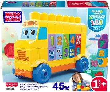 Ανακαλύψτε το παιχνιδιάρικο μάθημα με αυτό το πολύχρωμο λεωφορείο από τη MEGA BLOKS, που μαθαίνει στα παιδιά να συναρμολογούν και να μετρούν από το 1 έως το 10. Το σετ με 45 κομμάτια, συμπεριλαμβανομένου πλαισίου με ροδάκια, ανασυρόμενης πινακίδας στάσης και μεγάλων τουβλών με αριθμούς και εικόνες, υποστηρίζει τη λεπτή κινητικότητα, τη λογική και τα πρώιμα μαθηματικά. Ιδανικό για παιδιά από 18 μηνών.