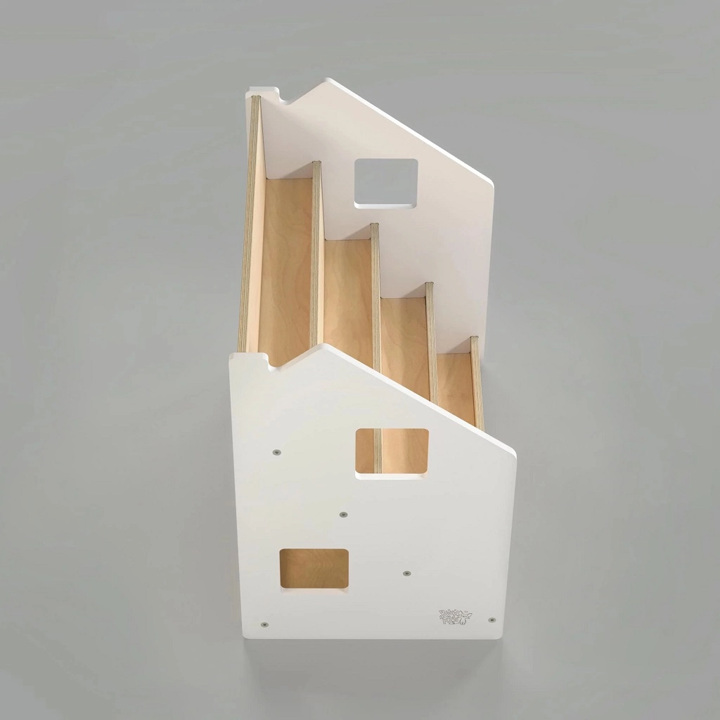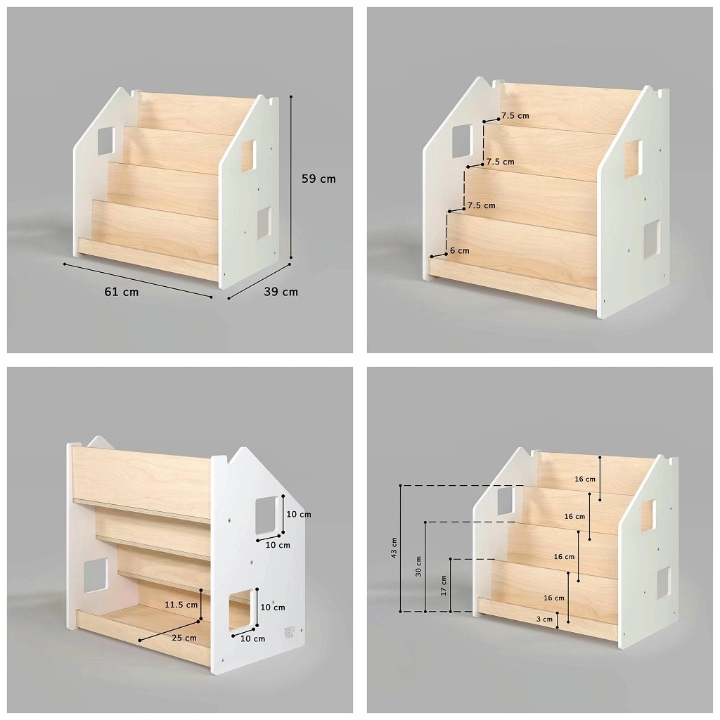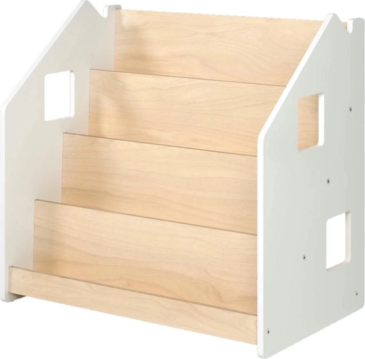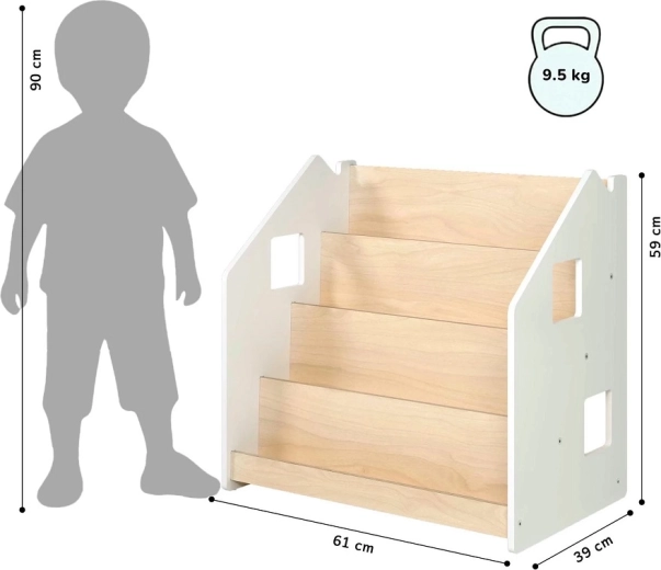 Η πρακτική παιδική βιβλιοθήκη BusyKids ενισχύει την αυτονομία και την αγάπη για το διάβασμα. Χάρη στην προβολή των βιβλίων με τα εξώφυλλα προς τα εμπρός, τα παιδιά επιλέγουν εύκολα το αγαπημένο τους. Προσφέρει 4 ευρύχωρα ράφια και πίσω χώρο αποθήκευσης για βιβλία ή παιχνίδια. Η κατασκευή είναι ανθεκτική και ασφαλής, με στρογγυλεμένες άκρες και βαφή με βάση το νερό. Ο μινιμαλιστικός σχεδιασμός ταιριάζει σε κάθε εσωτερικό χώρο.