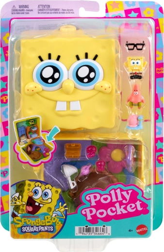 Πάρτε τη διασκέδαση στην τσέπη! Αυτό το συμπαγές σετ Polly Pocket με θέμα SPONGEBOB SQUAREPANTS ανοίγει σε μια λεπτομερή μίνι σκηνή του Bikini Bottom – θα δείτε το αναναδένιο σπίτι του SpongeBob, το πέτρινο σπίτι του Πάτρικ, το σπίτι του Καλαμάρη και το πεδίο με τις μέδουσες. Χάρη στη θήκη που κλείνει και την ανθεκτική κατασκευή, το παιχνίδι είναι εύκολα φορητό και ιδανικό για ταξίδια.