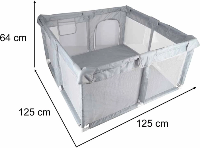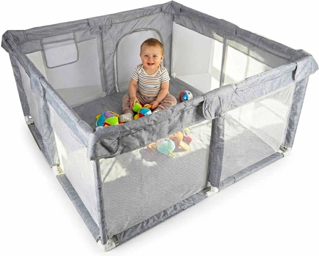 Πρακτικό παιδικό πάρκο διαστάσεων 120 × 120 cm που δημιουργεί ασφαλή και ευρύχωρο χώρο για παιχνίδι και ξεκούραση. Χάρη στους δικτυωτούς τοίχους έχετε πάντα το μωρό σε οπτική επαφή, η είσοδος με φερμουάρ διευκολύνει την πρόσβαση και η εύκολη συναρμολόγηση χωρίς βίδες εξοικονομεί χρόνο. Τη σταθερότητα εξασφαλίζουν συνδέσεις με βεντούζες, ενώ τα μαλακά υφασμάτινα τελειώματα αυξάνουν την ασφάλεια και την άνεση.