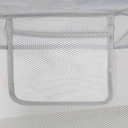 Οι δικτυωτές πλευρές βελτιώνουν την επίβλεψη του παιδιού και εξασφαλίζουν άριστο αερισμό. Η μαλακή επένδυση στα άνω άκρα αυξάνει την ασφάλεια.